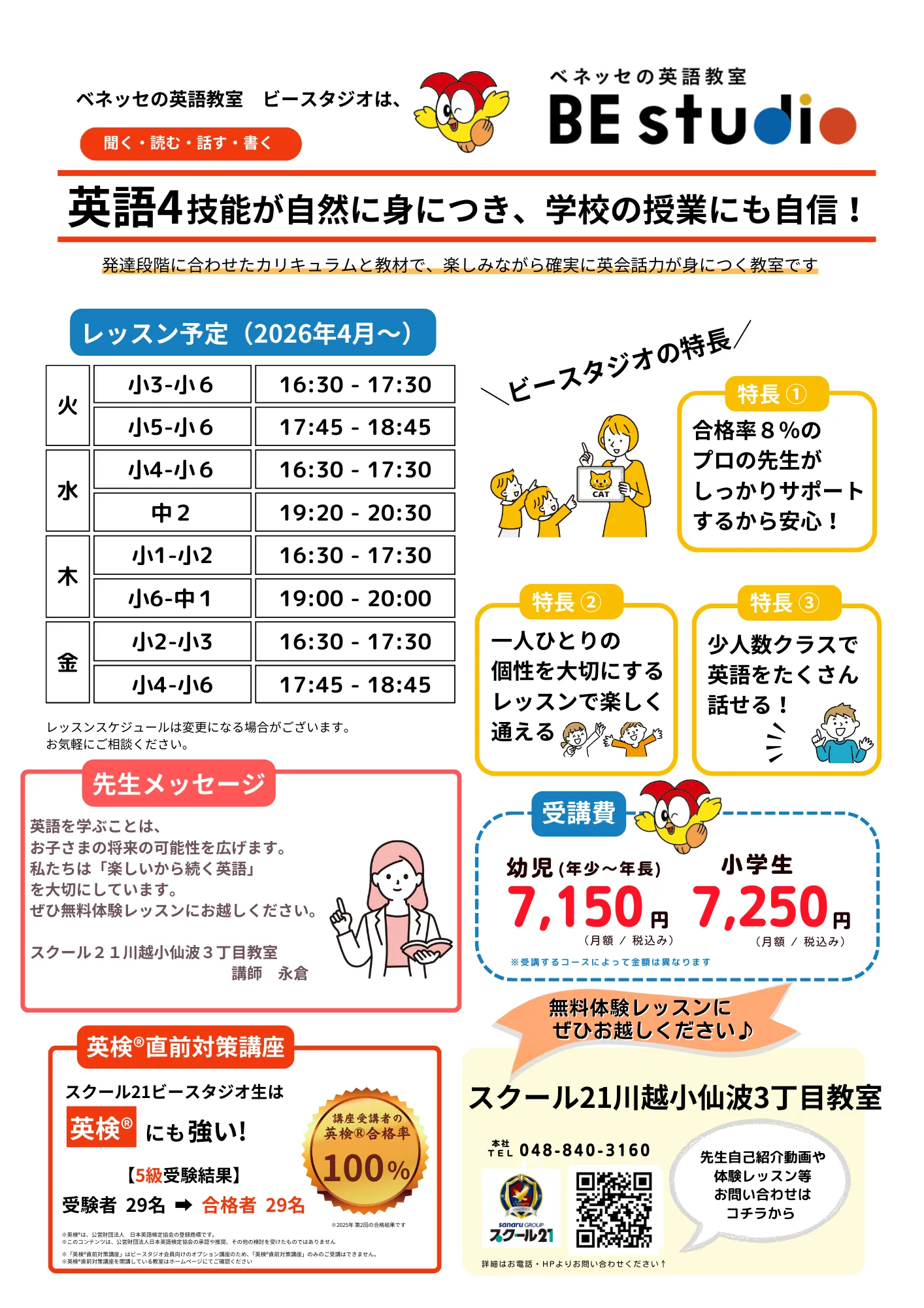 A 「外国語」として英語を学んだ経験から、子どものつまづきやすいポイントを熟知しており、きめ細やかなフォローが可能です。