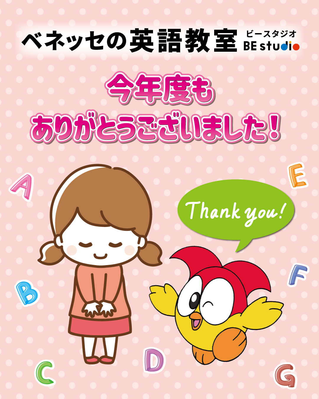 A はい。ビースタジオでは週1回のレッスンに加え、ご家庭で毎日5~10分英語に触れていただく仕組みを作っています。