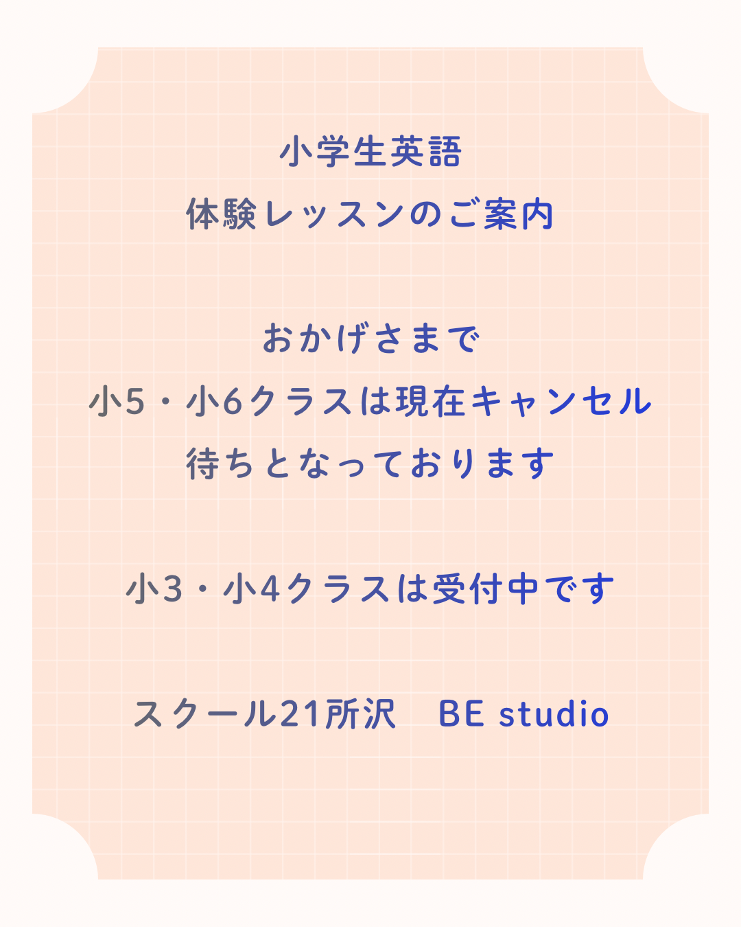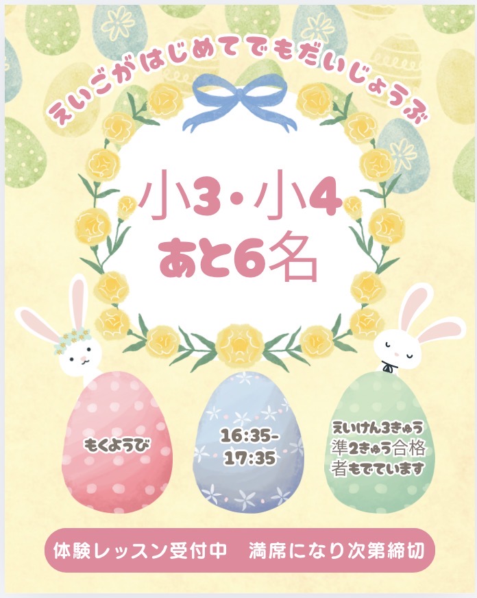 【小3・小4クラス 残り6名のご案内 】