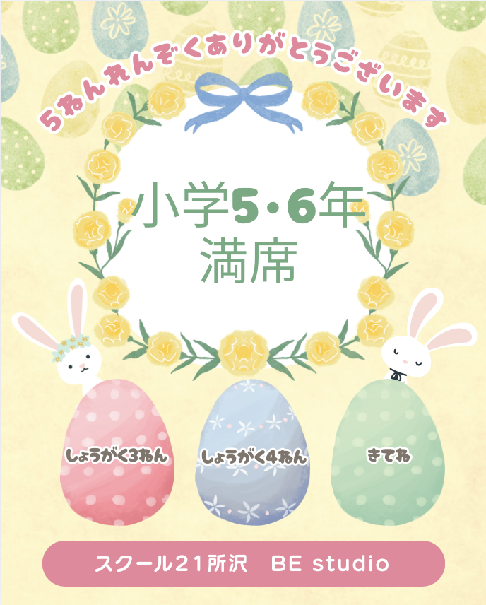 小5・小6クラス満席(5年連続)のお知らせ