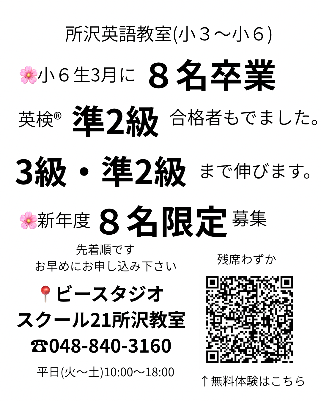 🌸【新年度8名限定募集】🌸小学生英語教室(所沢)