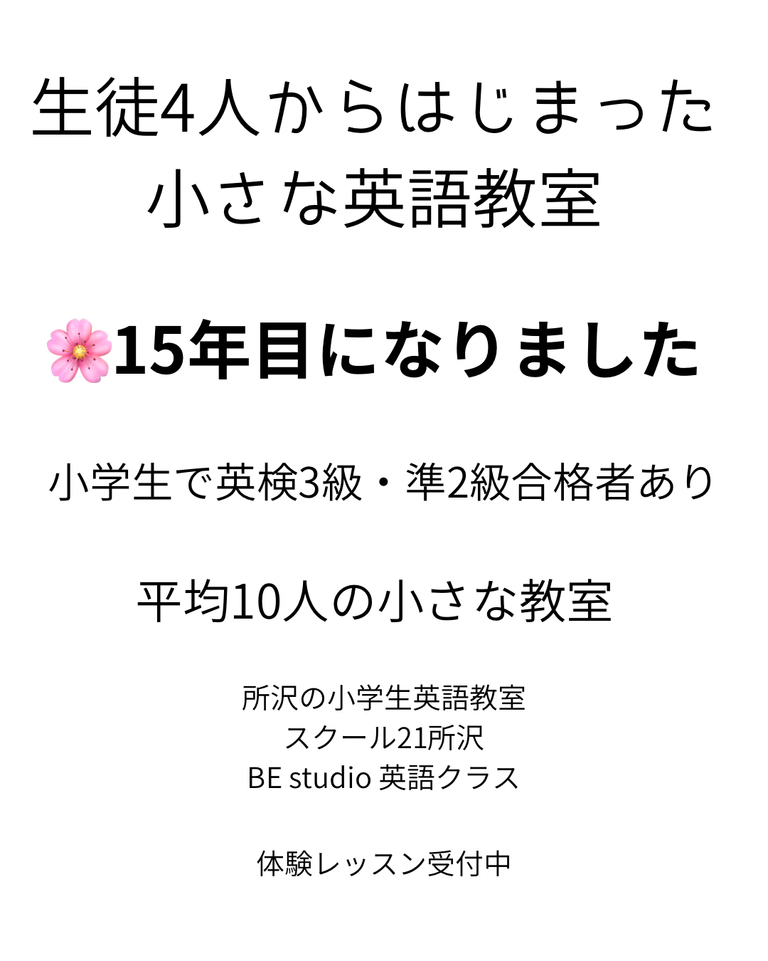 生徒4人からはじまった小さな英語教室、15年目になります。