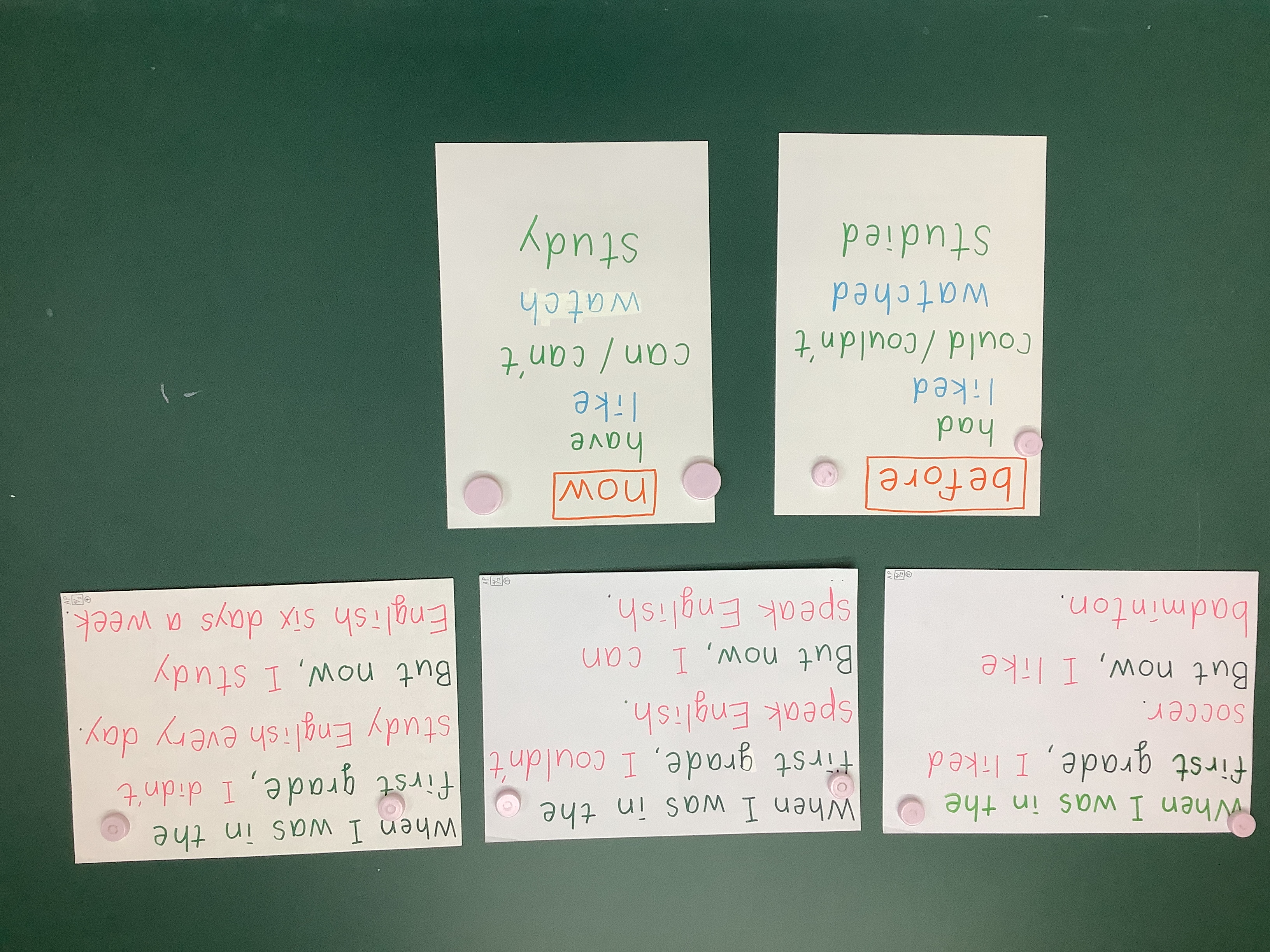 「英語を楽しく学ぶ」「文脈のある英語にたっぷりふれる」アプローチで、自分や家族、友だちのことについて会話したり、発表したり出来るようになります。頻出単語や既出単語を読めるようになり、知っている単語を書けるようになります。読み書きの土台もしっかりと養います。