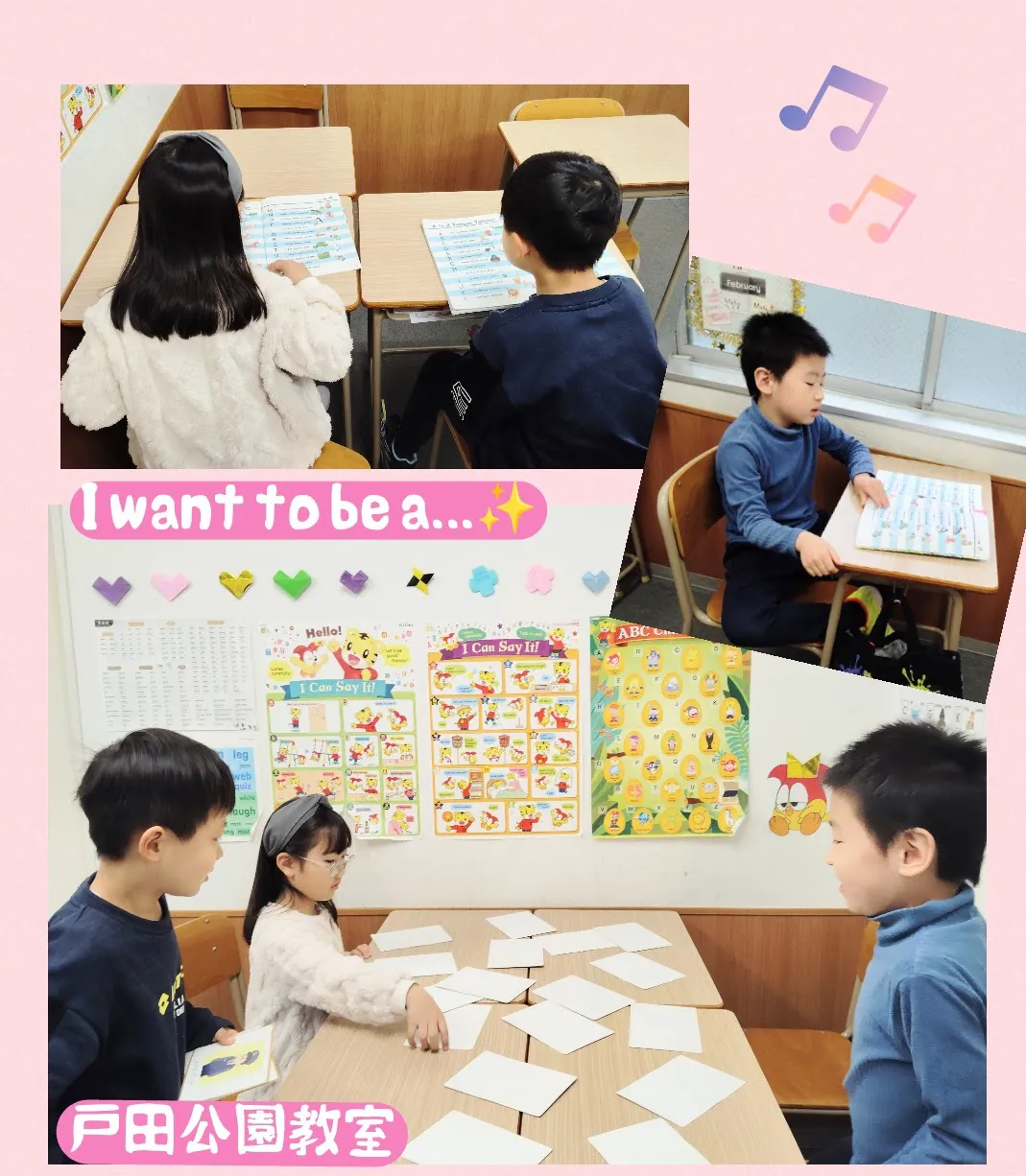 言葉を習得する時に「楽しい!」「好き!」という気持ちは最強のアイテムです。 まずは、レッスンを通して「英語は楽しい!」ということを知ってもらい、「英語が好き!」になってもらいたいと思っています。